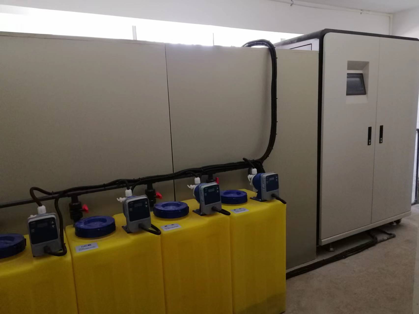 (6) 藥劑箱可在觸摸屏上一鍵加水,自動停水,停水自動啟動攪拌,攪拌完成自動停止。